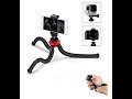 This video provides a follow-up on the tripod and the reasons I purchased a second tripod. The set contains a 12" Flexible Tripod with soft foam-covered legs that are easy to manipulate. The legs click into places for security. My Samsung Galaxy 6 phone fits perfectly in the phone holder. The phone holder was easy for me to use and I do not have the best fine motor skills. Once my phone was in the holder, in landscape view as I prefer, I could swivel the phone from side to side and back and forth with no problems. However, the Bluetooth Remote has not yet worked, even after several attempts. I have emailed the company for advice. The set has attachments for phones, GoPros, and regular cameras. While I am disappointed that two of the three legs broke after six or seven months of use, I bought a replacement from the same company.